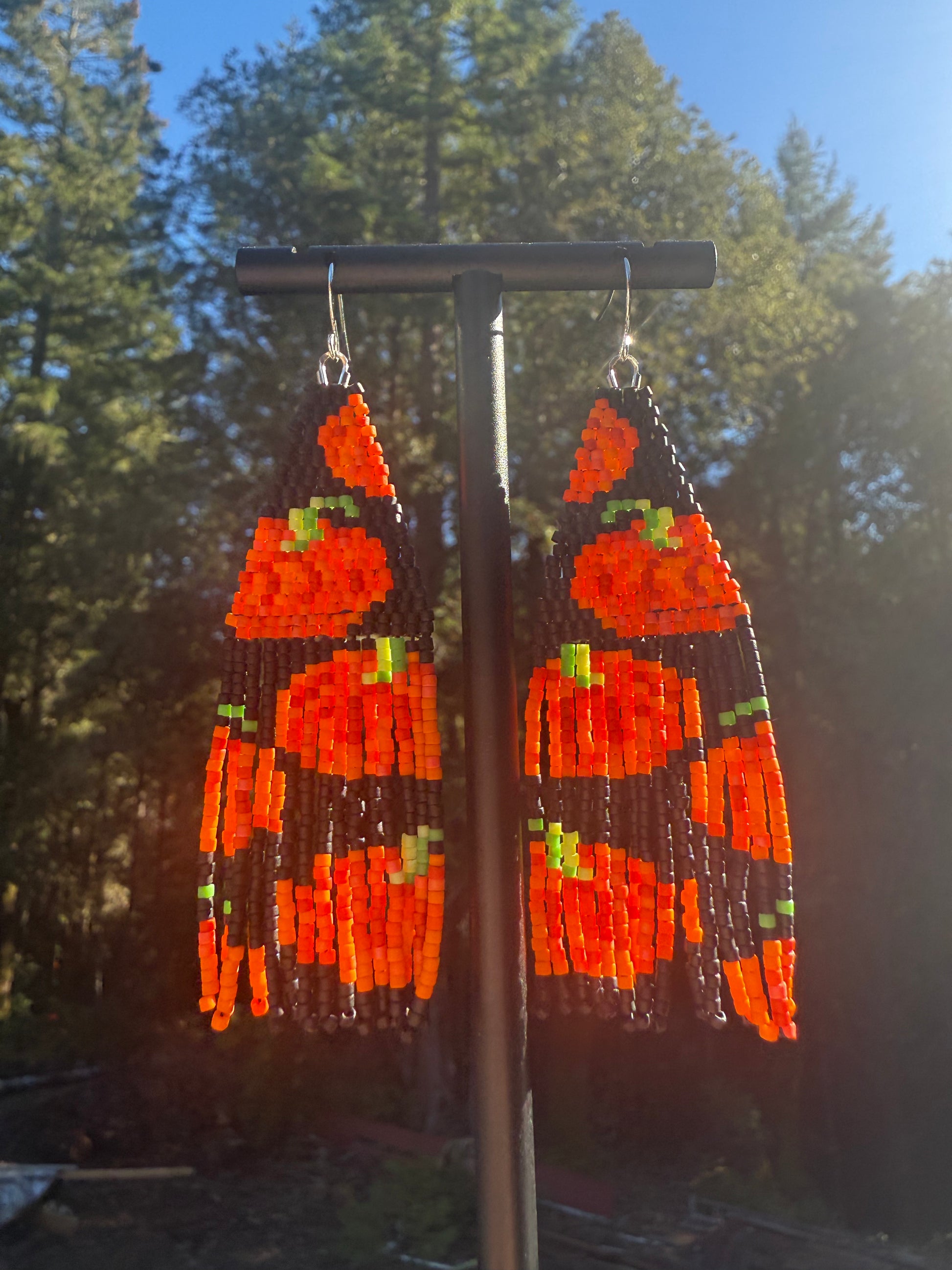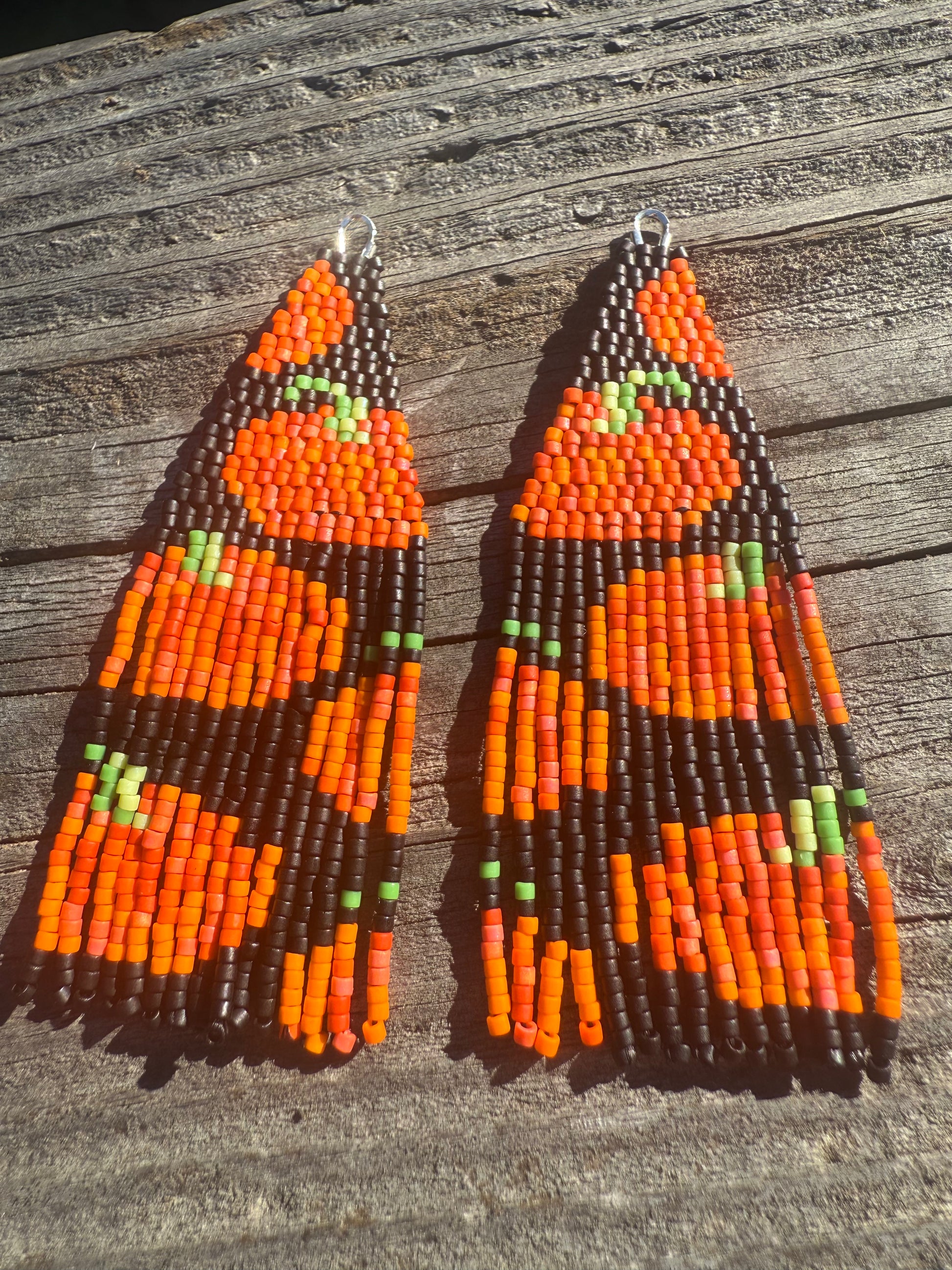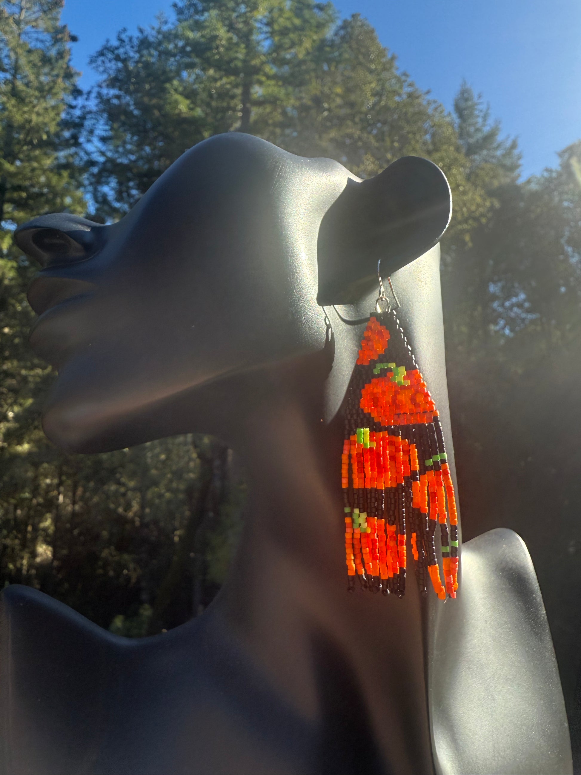 Experience the cozy, autumn vibes with our Pumpkin Patch earrings. Hand woven with delicate 11/0 Myuki Delica Glass seed beads using a double drop brick stitch technique, and finished with 925 sterling silver hooks. Perfect for adding a touch of fall to any outfit.